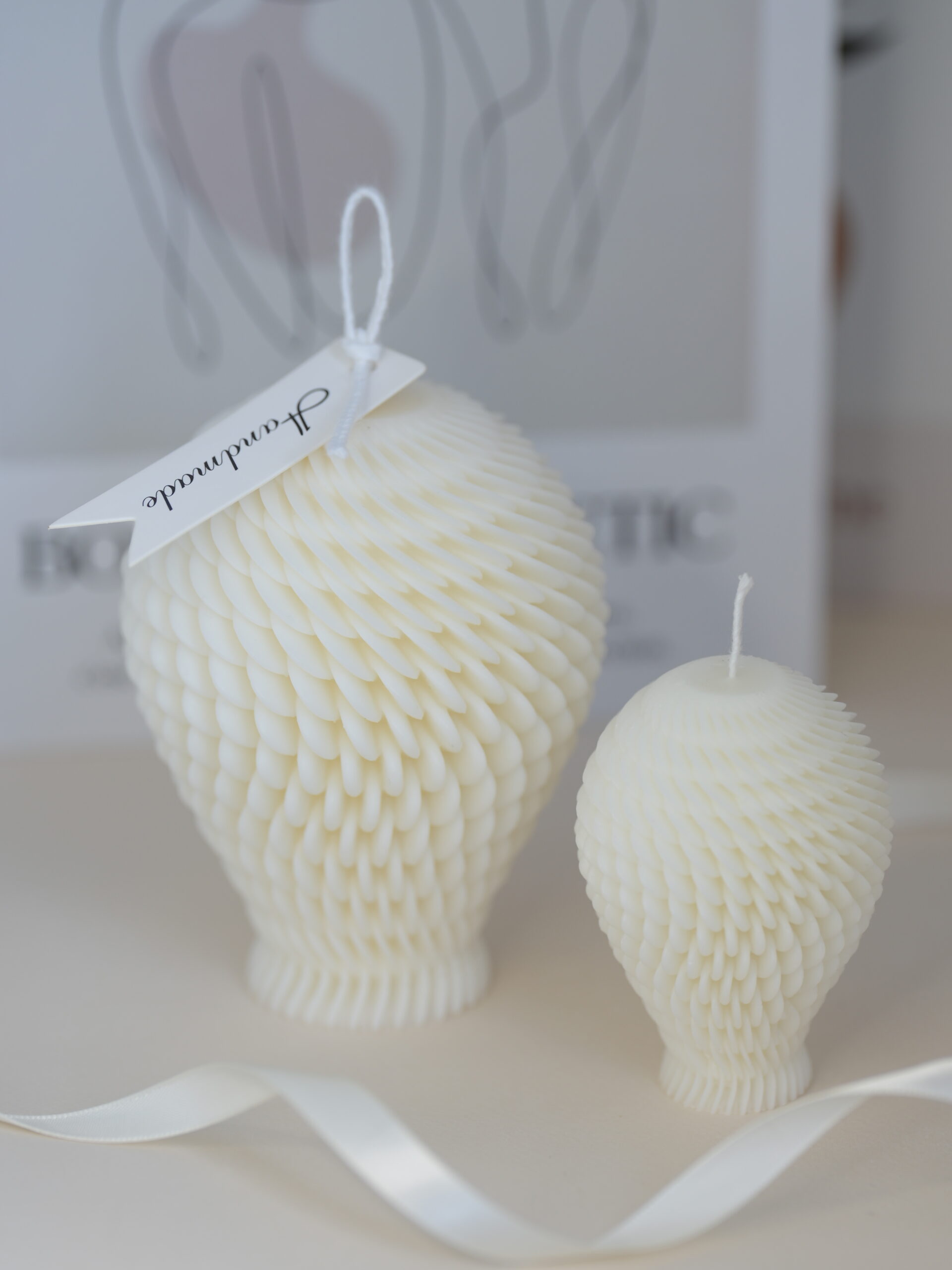 Velas “Colmenas” grande y pequeña de la colección Geométrica.